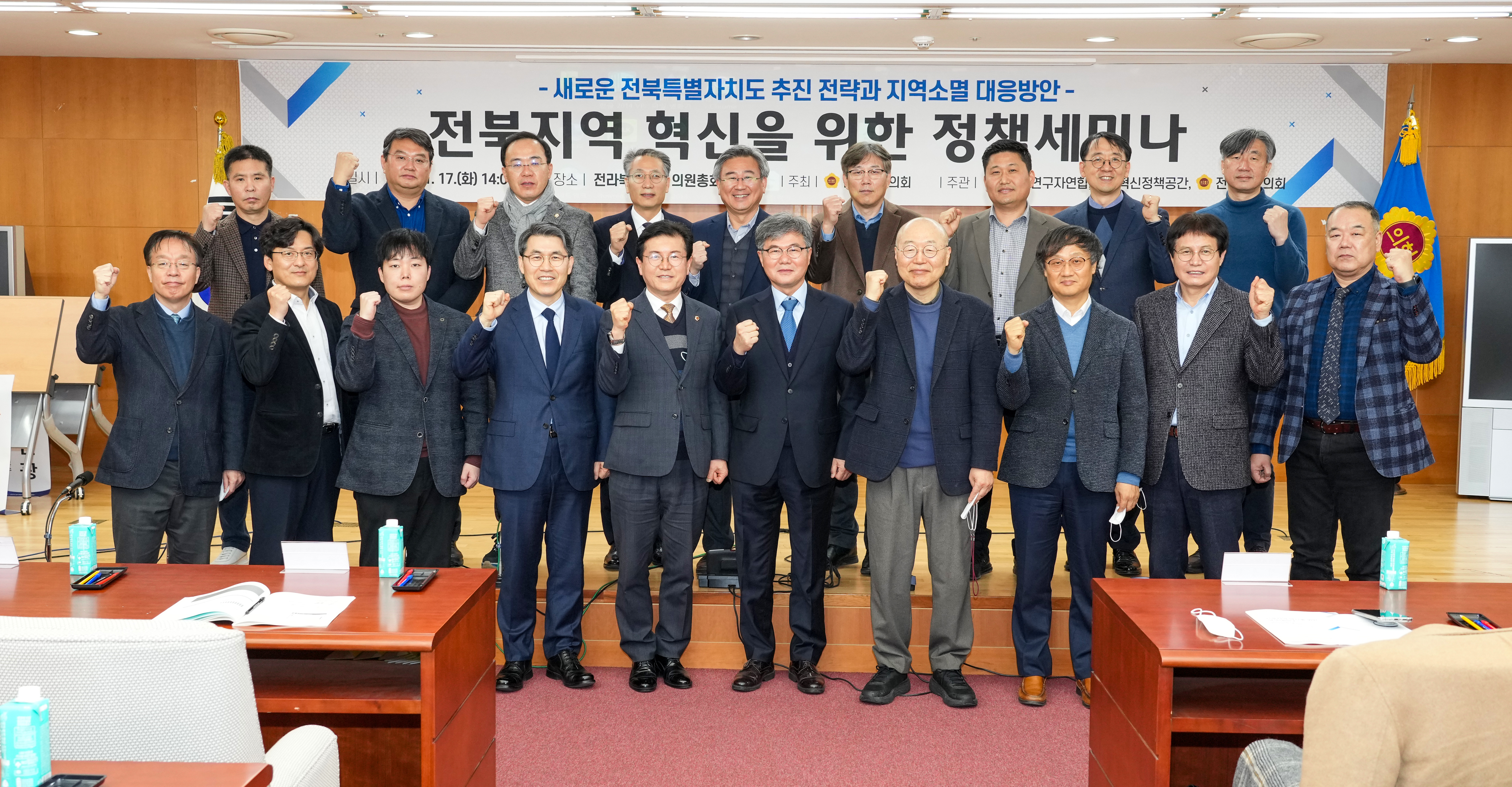 [정치=뉴전북] 전북도의회 박용근 의원은 지난 17일 전북도의회 의원총회의실에서 새로운 전북특별자치도 추진 전략과 지역소멸 대응방안 마련을 위한 정책세미나를 개최했다.
