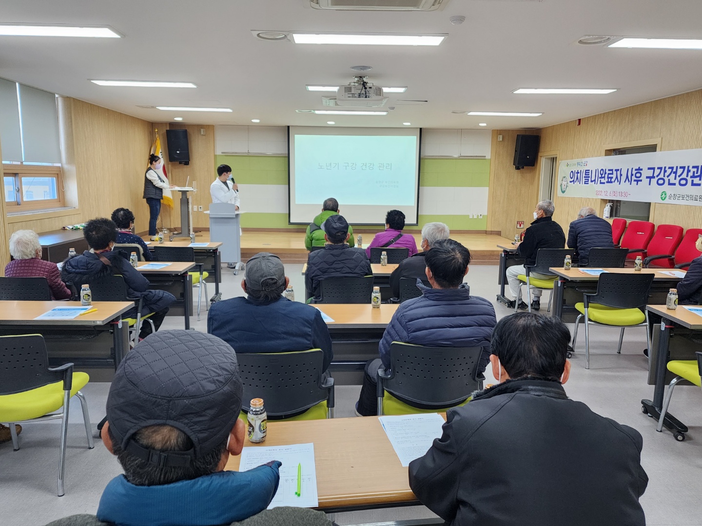 지원대상은 군에 1년 이상 거주하고 있는 만 65세 이상 노인 중 기초생활수급자, 차상위본인부담경감자, 중위소득 120% 이하 및 장애가 심한 장애인(연령제한 없음)이며 신청은 보건의료원에 접수한 후 관내 협약된 6개 치과의원 중 자율적으로 선택하여 시술을 받을 수 있다.