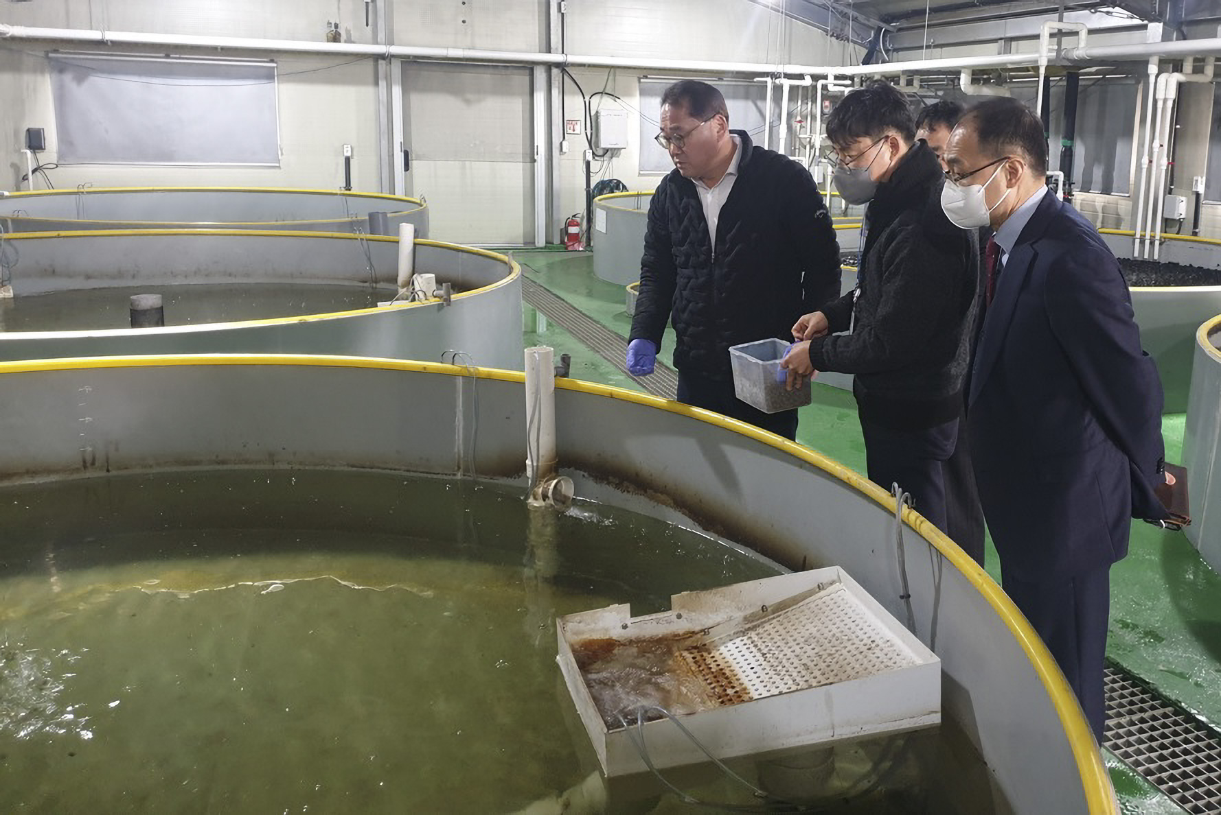 또한 20212월 해수부 친환경양식어업육성 공모사업으로 선정된 흰다리새우 스마트양식 실증 연구시설 건립 사업(’23년 준공, 70억 원) 진행 현황을 점검했다.