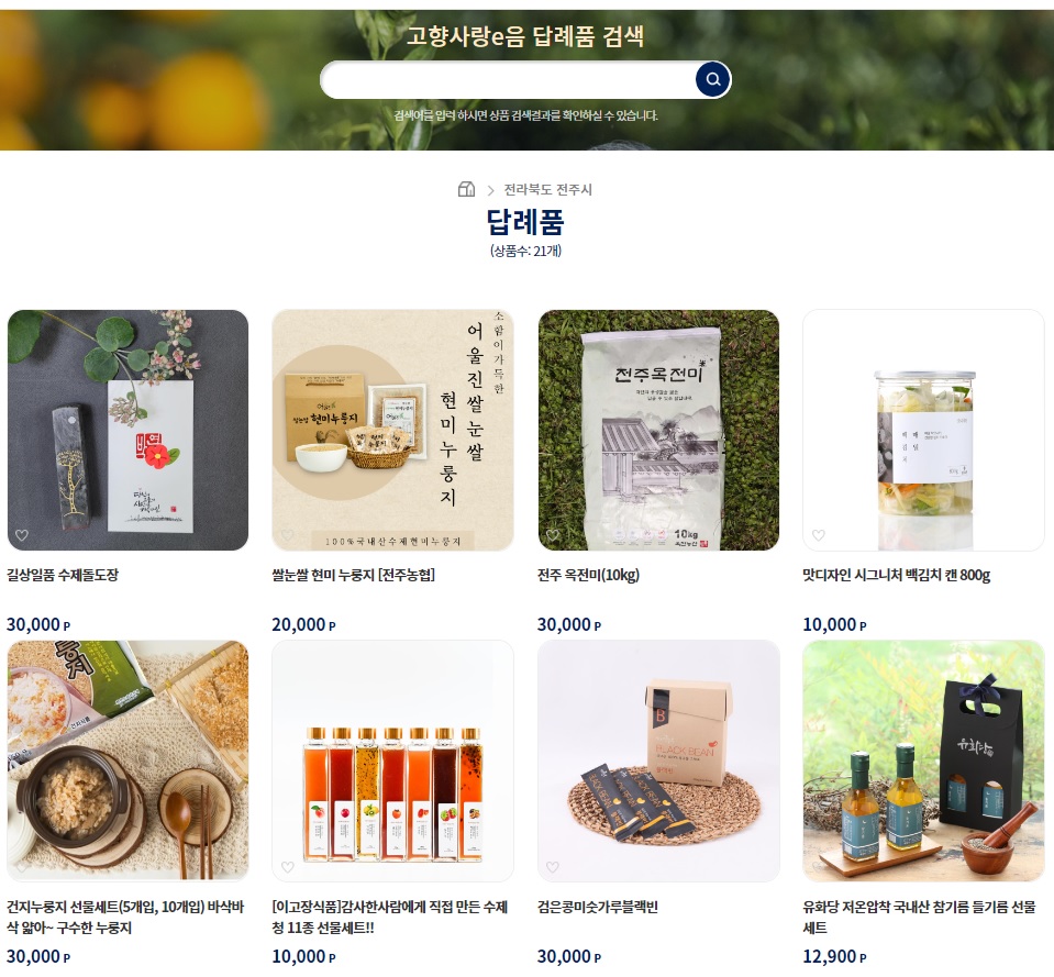 [전주=뉴전북] 전주시가 고향사랑기부제 답례품을 늘려 기부자에게 전주만의 매력이 담긴 폭넓은 답례품 선택권을 보장하기로 했다.