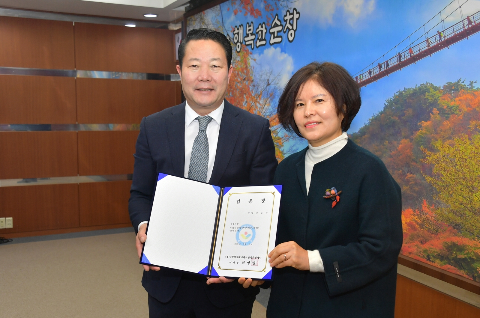 지난 6일 순창군청 영상회의실에서 (재)순창발효테마파크관리운영재단 이사장인 최영일 순창군수로부터 신임 원장으로 임명받은 선윤숙 씨의 취임 다짐이다.