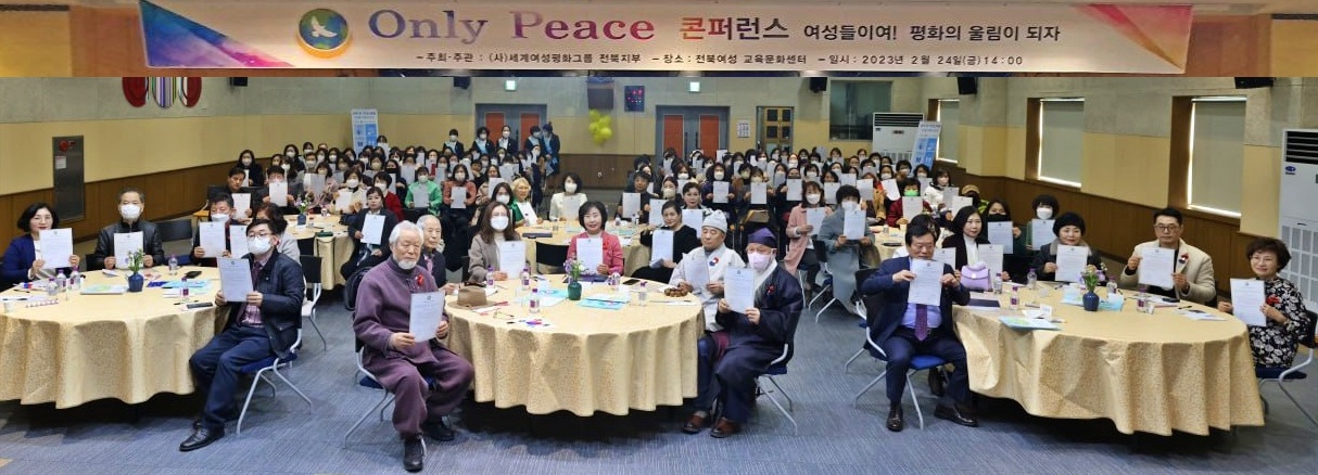 [전주=뉴전북] ㈔세계여성평화그룹 글로벌 12(IWPG, 글로벌국장 여미현)2023IWPG의 슬로건인 지속가능한 평화를 위한 글로벌 여성 파트너십 강화를 기반해 여성들이여! 평화의 울림이 되자라는 주제로 ‘Only Peace 콘퍼런스를 개최했다.