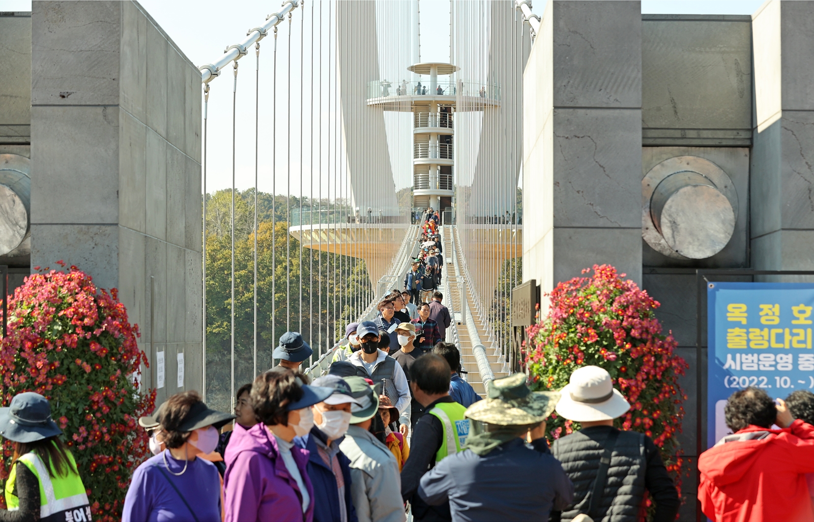 군은 출렁다리는 관광객 이용이 많은 시설물로 작은 결함에도 대형 사고로 이어질 수 있는 만큼 지속적인 유지관리에 만전을 기하고 있다.