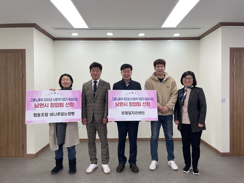 [남원=뉴전북] 고용노동부와 한국사회적기업진흥원이 함께하는 「2023년 사회적기업가 육성사업」에 남원시에 소재하고 있는 협동조합 비니루없는점빵(대표 이재향)과 로뎀일자리센터(대표 강용구) 2개 팀이 선정됐다.