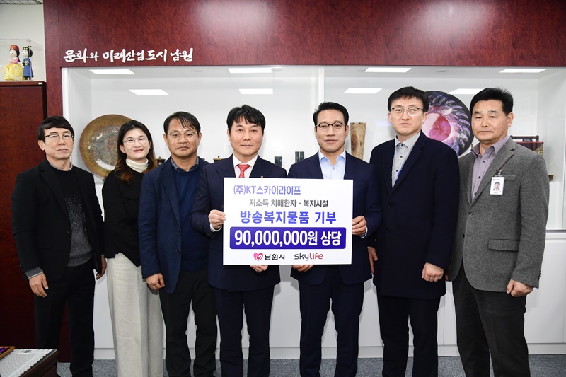[남원=뉴전북] 남원시(시장 최경식)는 3월 13일 남원시청 2층 시장실에서 KT스카이라이프(김철수 대표이사)와 방송복지물품 기부식을 가졌다.