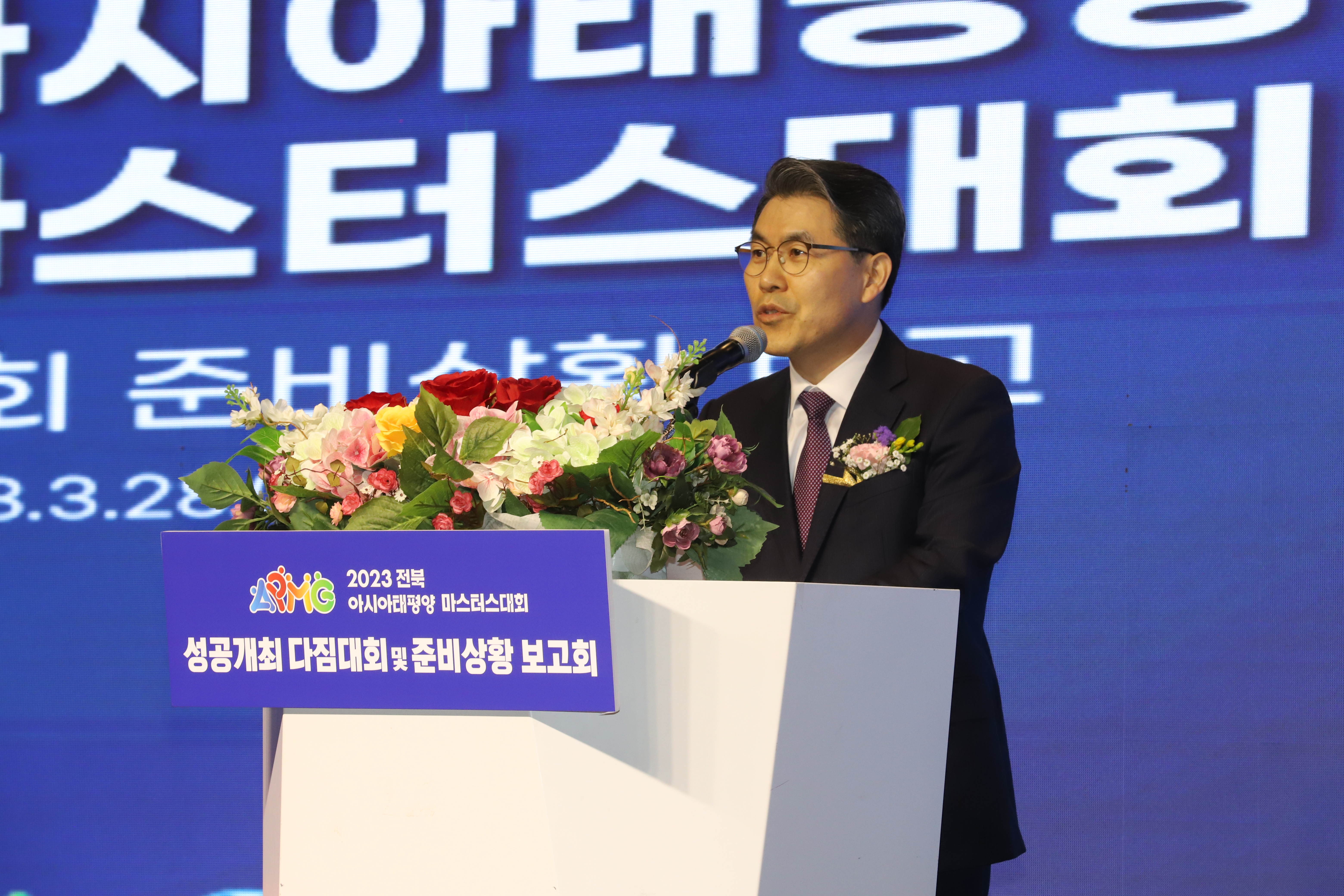 조직위는 지난 28일 전주 라한 호텔에서 오는 5월 12일 개최되는 2023 전북 아‧태 마스터스대회를 성공적으로 개최하기 위해 조봉업 행정부지사 주재로 D-45 성공 개최 다짐대회 및 준비상황 보고회를 가졌다고 밝혔다.