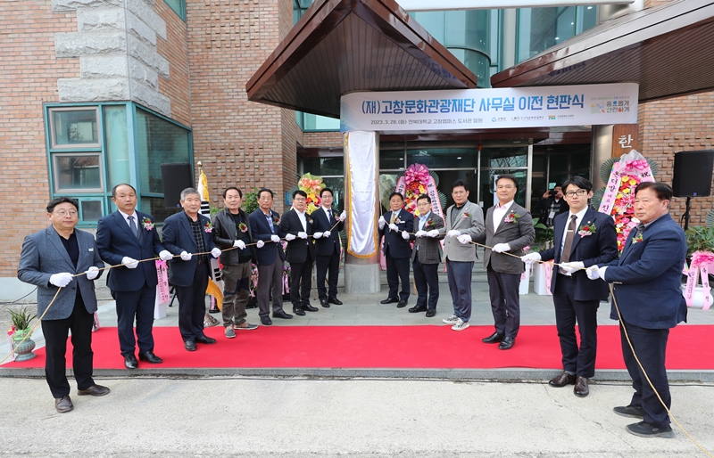 [고창=뉴전북] 고창문화관광재단이 전북대학교 고창캠퍼스 도서관 2층(고창읍 태봉로 361)으로 사무실을 이전하고 지난 28일 현판식을 개최했다.