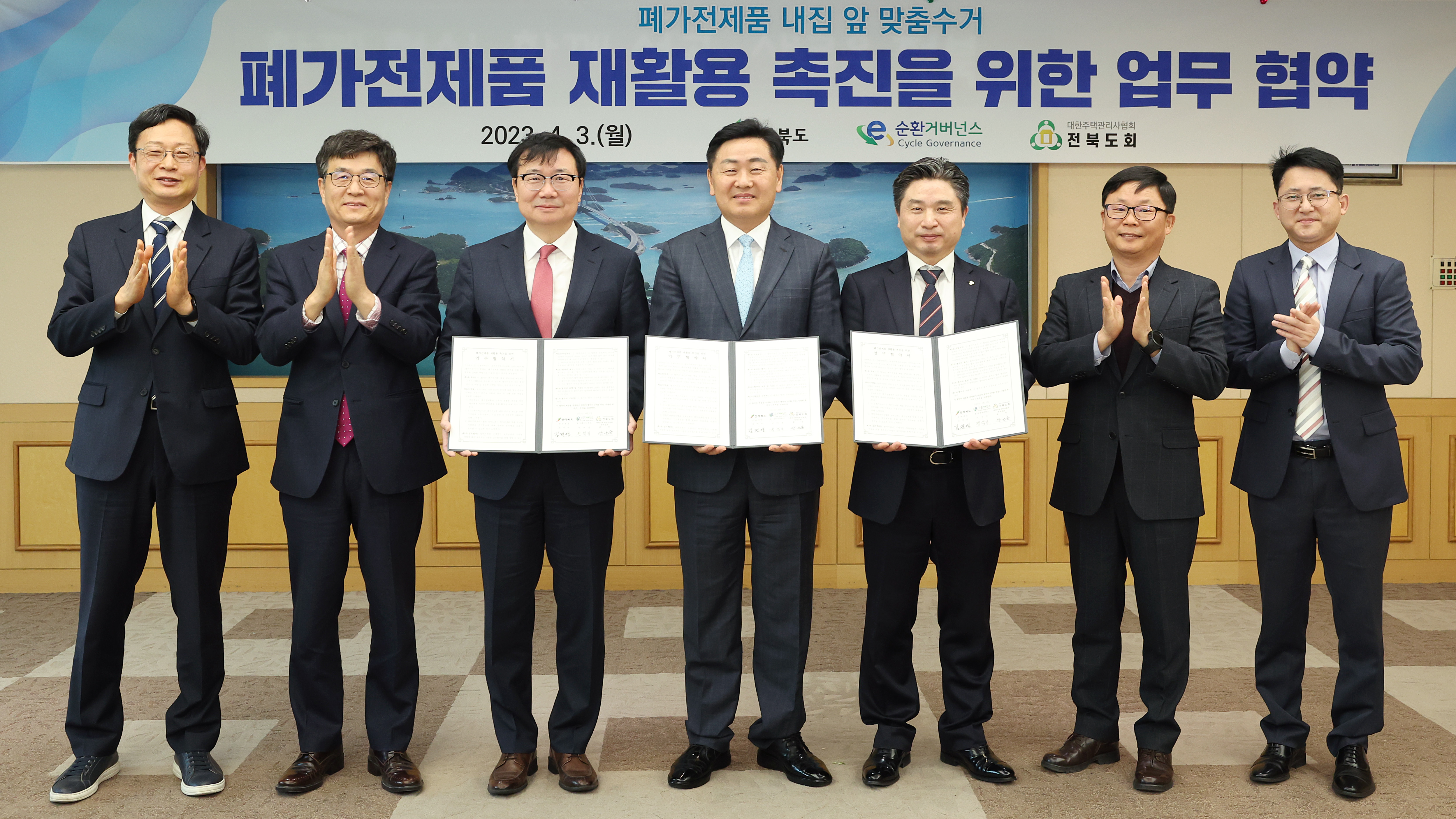 특히, 이번 협약은 전북도가 폐가전제품 수거와 재활용을 전담하고 있는 E-순환거버넌스, 주택관리사협회와 함께 전국 최초로 모범적인 민관협력체계를 만들었다는 점에서 큰 의미를 주고 있다.