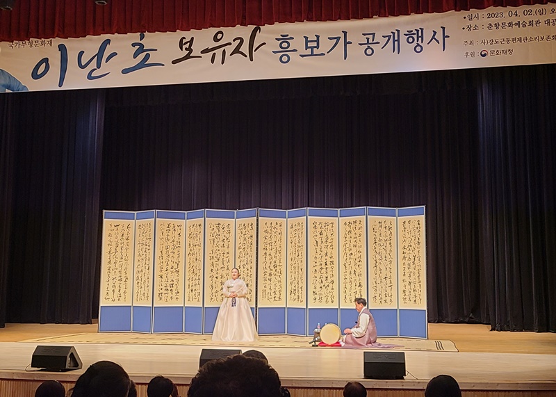 [남원=뉴전북] 국가 무형문화재 판소리 흥보가 보유자 이난초 명창의 공개행사가 지난 42() 14시 남원시 춘향문화예술회관 대공연장에서 열렸다.