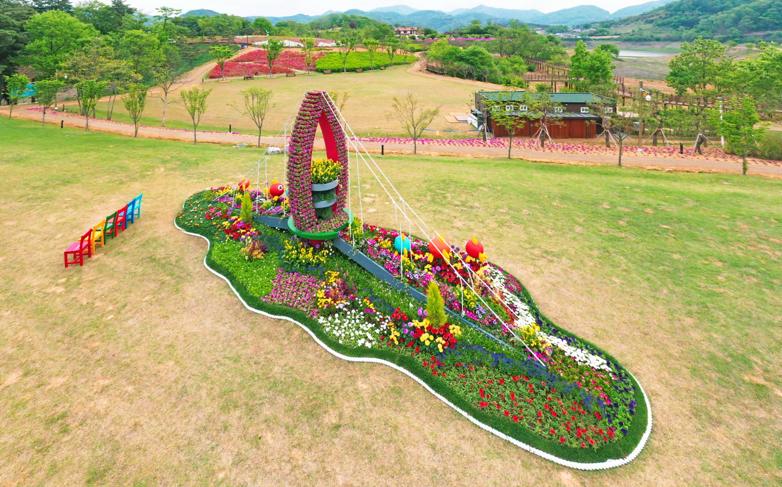 군에 따르면 5월 가정의 달을 맞이하여 온 가족이 다 함께 즐기고 힐링할 수 있도록 출렁다리 입구부터 다년생 초화 및 알리움 등 29종 계절꽃 50,000여 본을 식재했다.