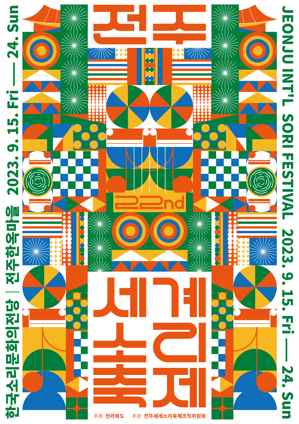 다양한 변화와 함께 새롭게 거듭날 올해 소리축제는 9월 15일(금)부터 24일(일)까지 열흘간 한국소리문화의전당과 전주한옥마을 일대(동헌, 대사습청, 전동성당 등)와 전북 14개 시군에서 열린다.
