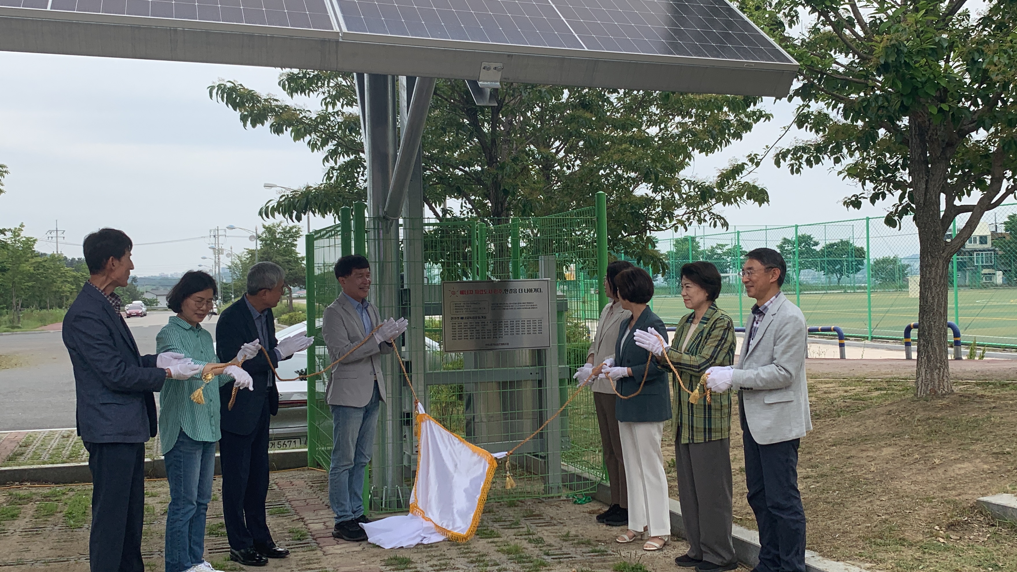 전주시는 지난 24일 완산생활체육공원에서 이남숙 복지환경위원장, 유남희 전주시민햇빛발전협동조합 이사장과 조합원, 일반시민이 참석한 가운데 ‘6호 전주시민햇빛발전소 준공식’을 열었다.