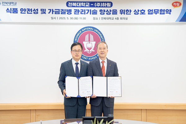 [전북대=뉴전북] 전북대학교와 ㈜하림이 5월 30일 오전 11시 30분 산학협력 업무협약을 체결했다.