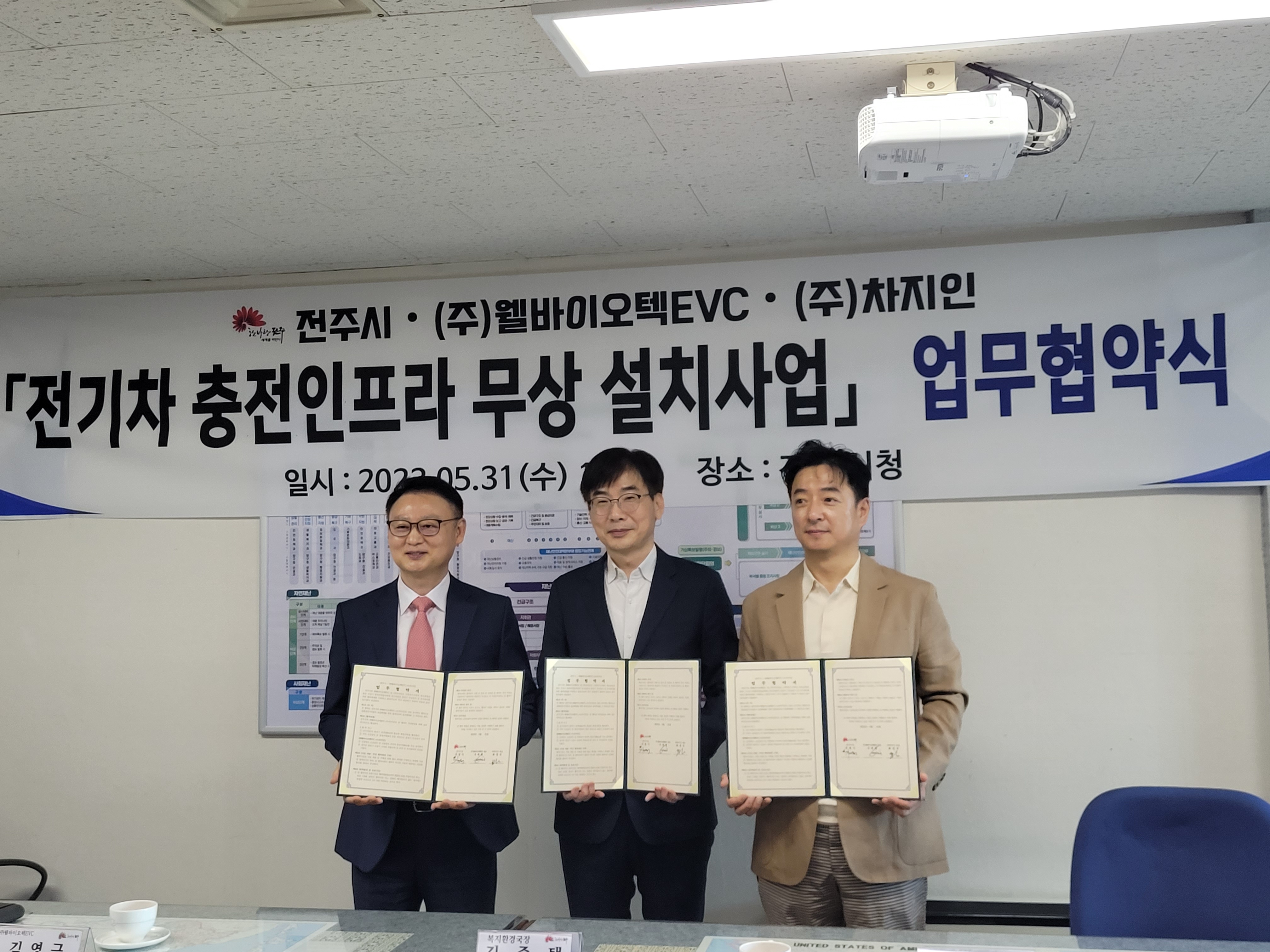 • - 전주시-㈜웰바이오텍EVC-㈜차지인, ‘전기차 충전인프라 무상 설치사업’ 협약 체결