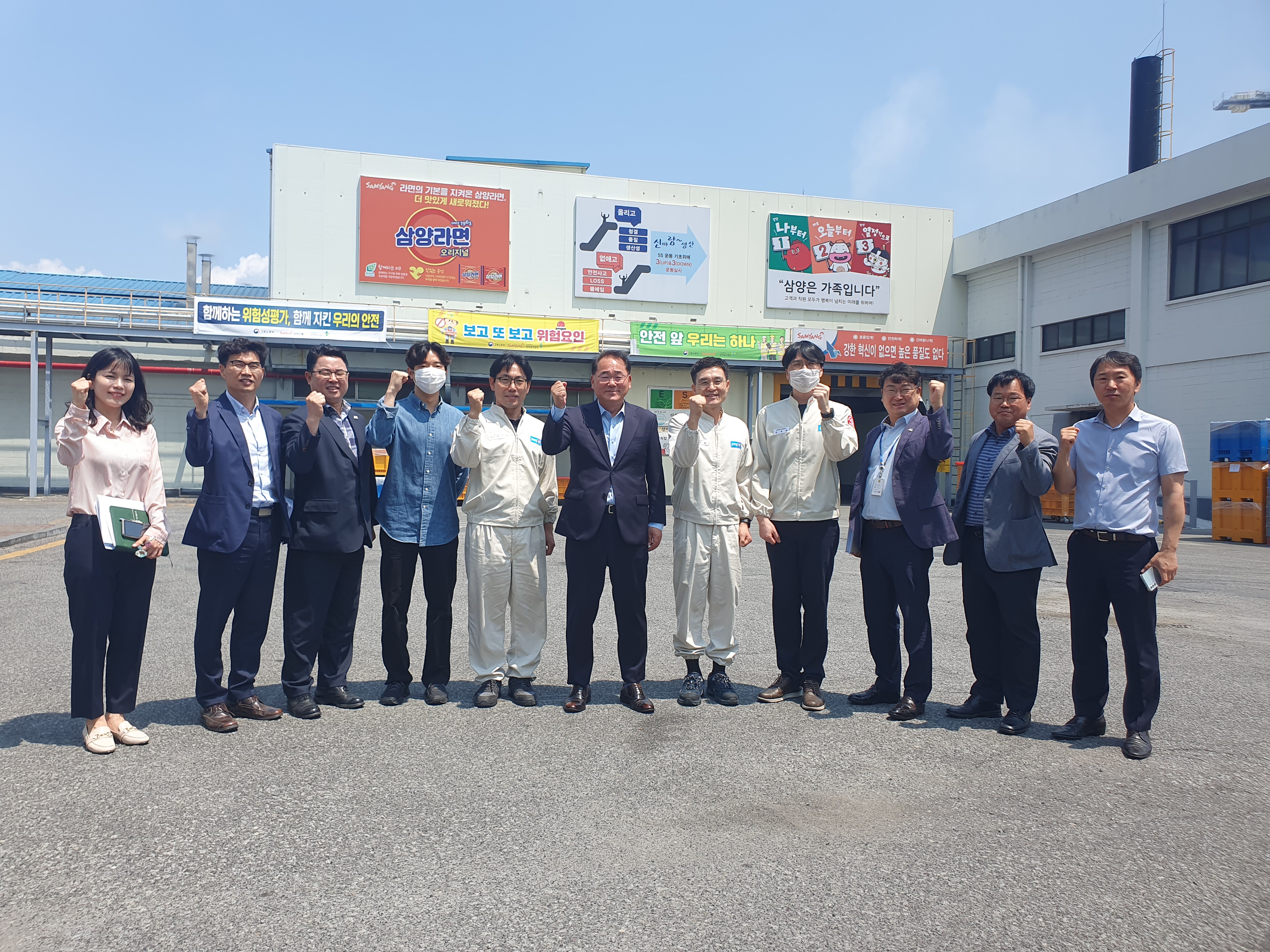 [도정=뉴전북] 김종훈 전라북도 경제부지사는 14일 익산시에 소재한 삼양식품 익산공장을 방문해 라면 수출 동향 및 기업의 애로사항을 청취하고 관계자를 격려했다.