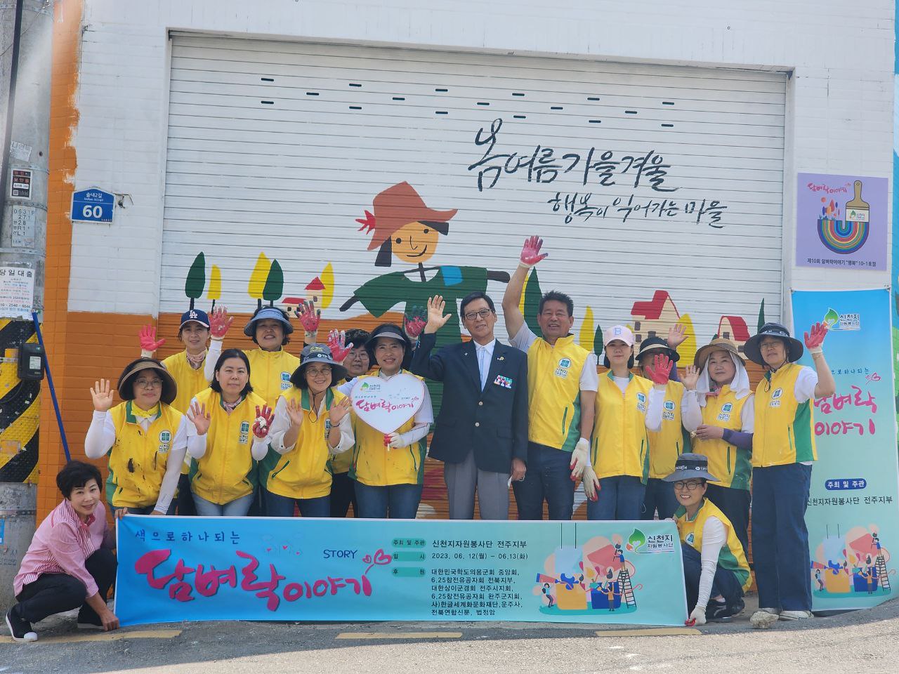 이번 담벼락이야기 봉사에는 대한민국학도의용군회 중앙회, 6,25참전유공자회 전북지부와 완주군지회, 대한상이군경회 전주시지회, (사)한글세계화문화재단, 운주사가 함께 했고 신천지자원봉사단 전주지부 회원 100여명이 봉사활동에 참여했다.