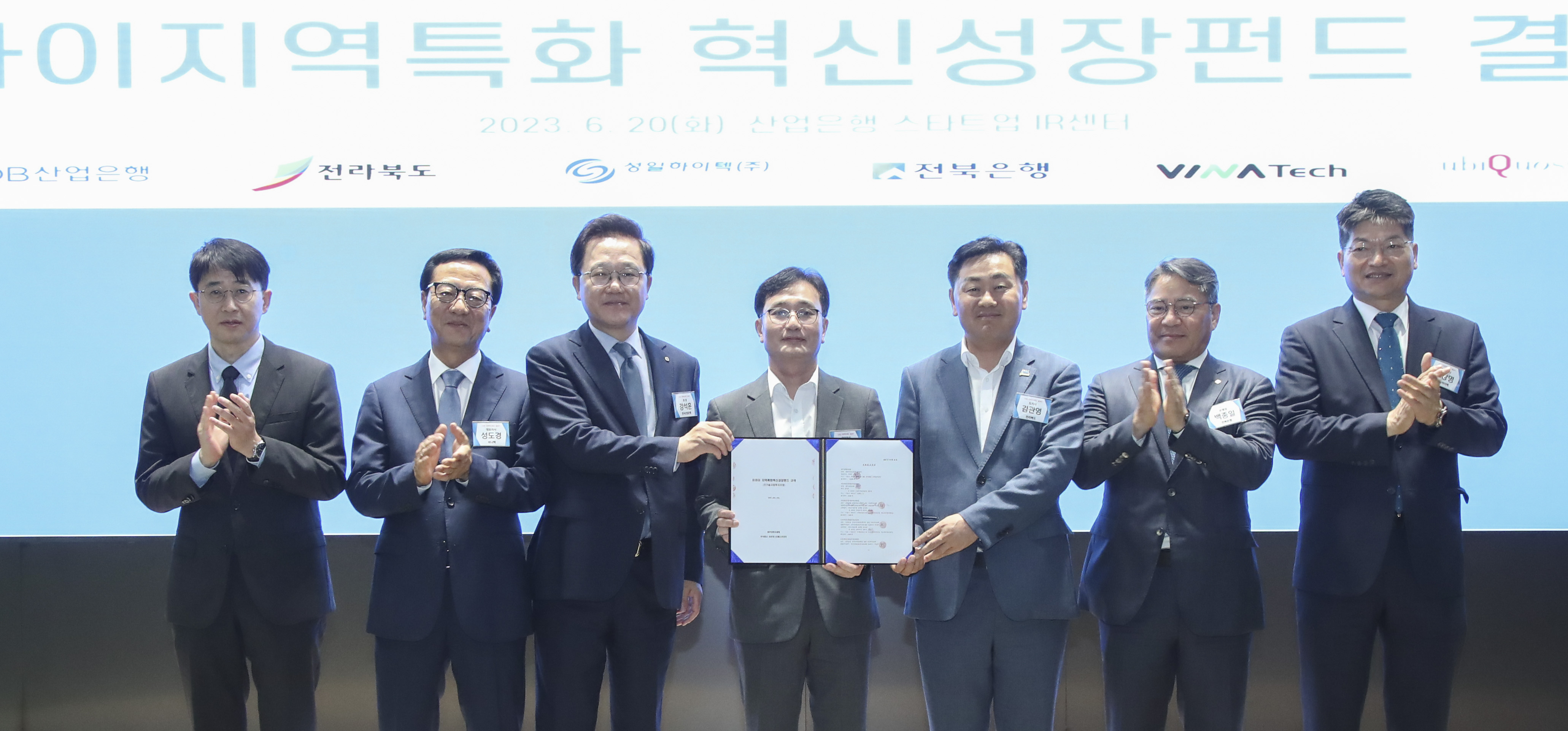 [경제=뉴전북] 전북도는 20일 서울 KDB산업은행 본사에서 KDB산업은행과 함께 1,406억 원 규모의“전북도-KDB산업은행 지역혁신 성장펀드(이하 전북-KDB 혁신펀드)”결성식을 가졌다. 이에 벤처투자 환경 구축을 위해 ‘1조 펀드 조성’의 주춧돌을 다지고 있다.