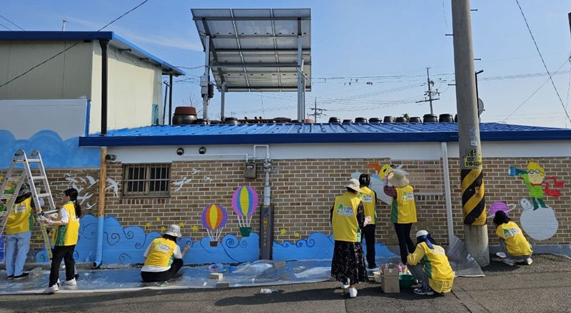 벽화 봉사는 색으로 하나되는 ‘담벼락 이야기’라는 주제로 열렸다.