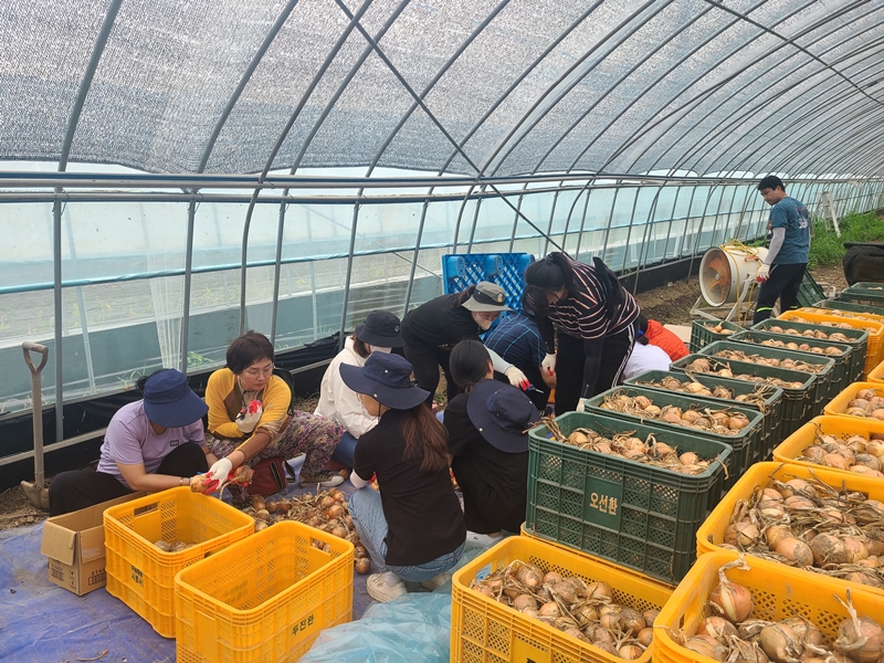 - 인력부족 겪는 양파농가 찾아 수확 및 선별 작업에 두 팔 걷어