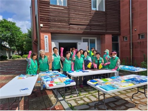 그간 수집한 재사용 가능한 아이스팩 300개를 관촌 새마을지회 부녀회원들이 관촌면 자원봉사센터에서 아이스팩 세척․건조 봉사활동으로 구슬땀을 흘렸다.