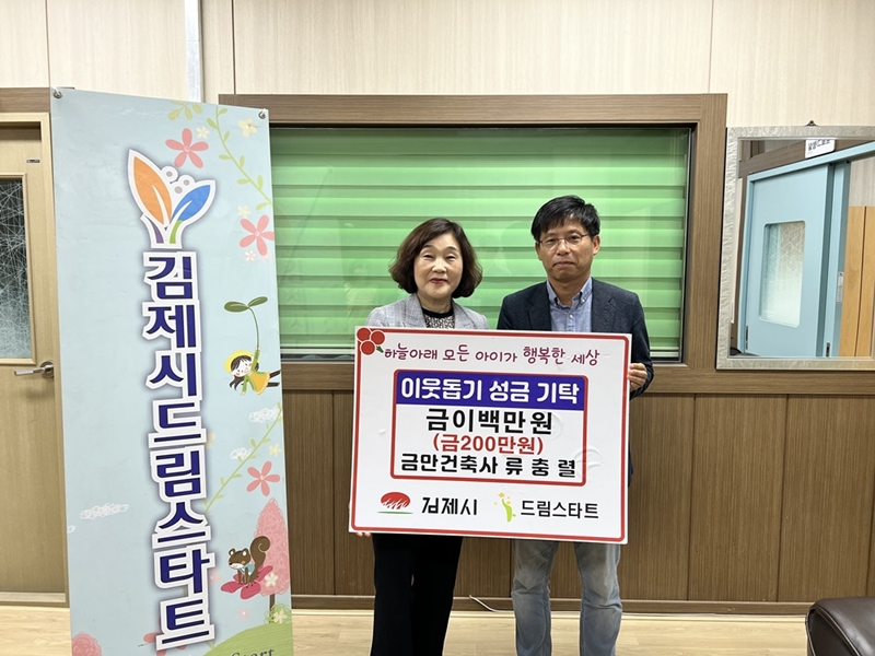 [김제=뉴전북] 김제시는 지난 30일 금만건축사(대표 류충렬)로부터 김제시 취약계층 아동을 위한 후원금 200만 원을 기탁받았다고 전했다.