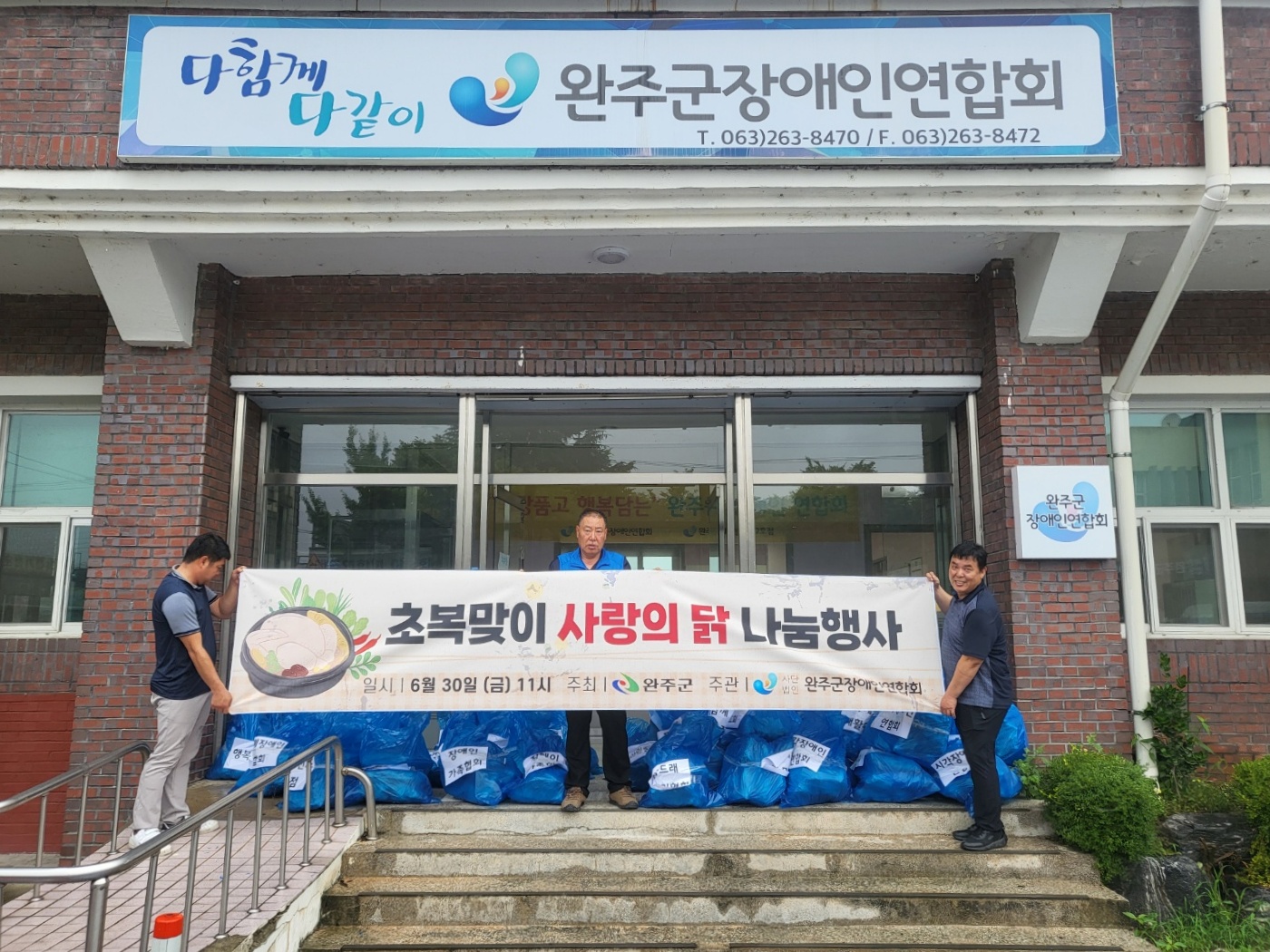 3일 완주군에 따르면 희망소리봉사단은 최근 연일 계속되는 무더위에 지친 장애인 및 취약계층을 위해 관내 24개 장애인 시설 및 단체에 닭 2000마리(700만원 상당)를 전달했다.