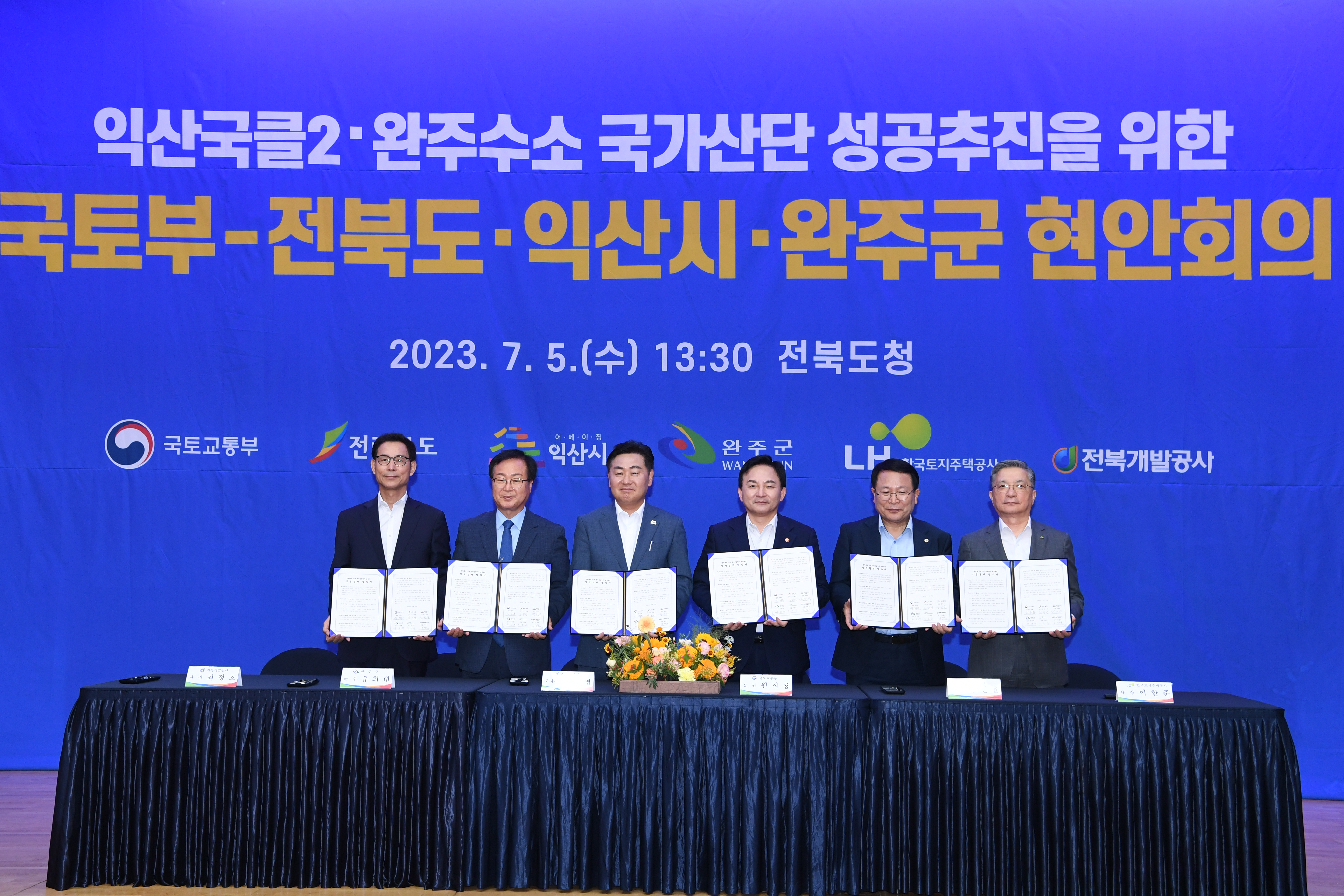 아울러, 국가산업단지 현안회의 및 상생협약식 이후에는 일진하이솔루스와 완주군, 전라북도 간 완주 수소특화 국가산단 투자양해각서를 체결이 이뤄졌다.