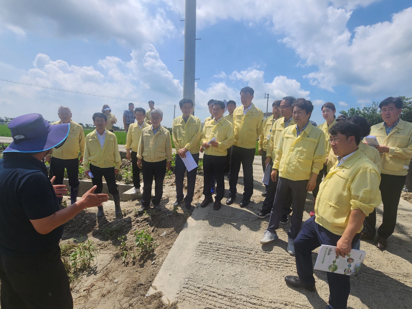 익산시 오산면, 망성면 일대를 찾은 농산업경제위원회 위원들은 농작물 피해를 입은 농업인의 고충을 듣고 농작물 및 시설원예 수해 피해 현장을 직접 확인했다.