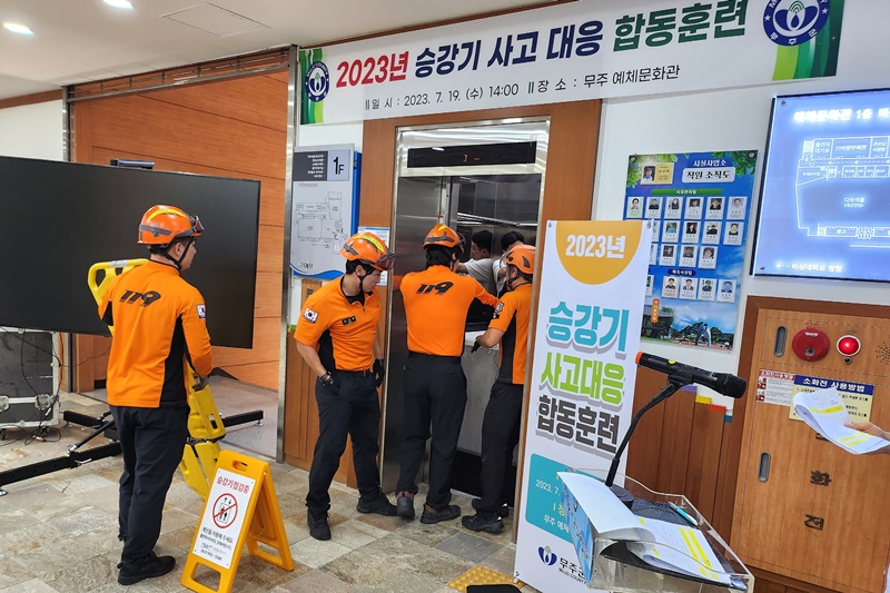 이날 훈련 외에도 무주군은 무주군 홈페이지와 전광판 등을 활용해 “승강기 갇힘 사고 대응요령”을 공유하고 리플릿과 전단지를 배포하는 등 군민 관심을 모으는데 주력하고 있다.