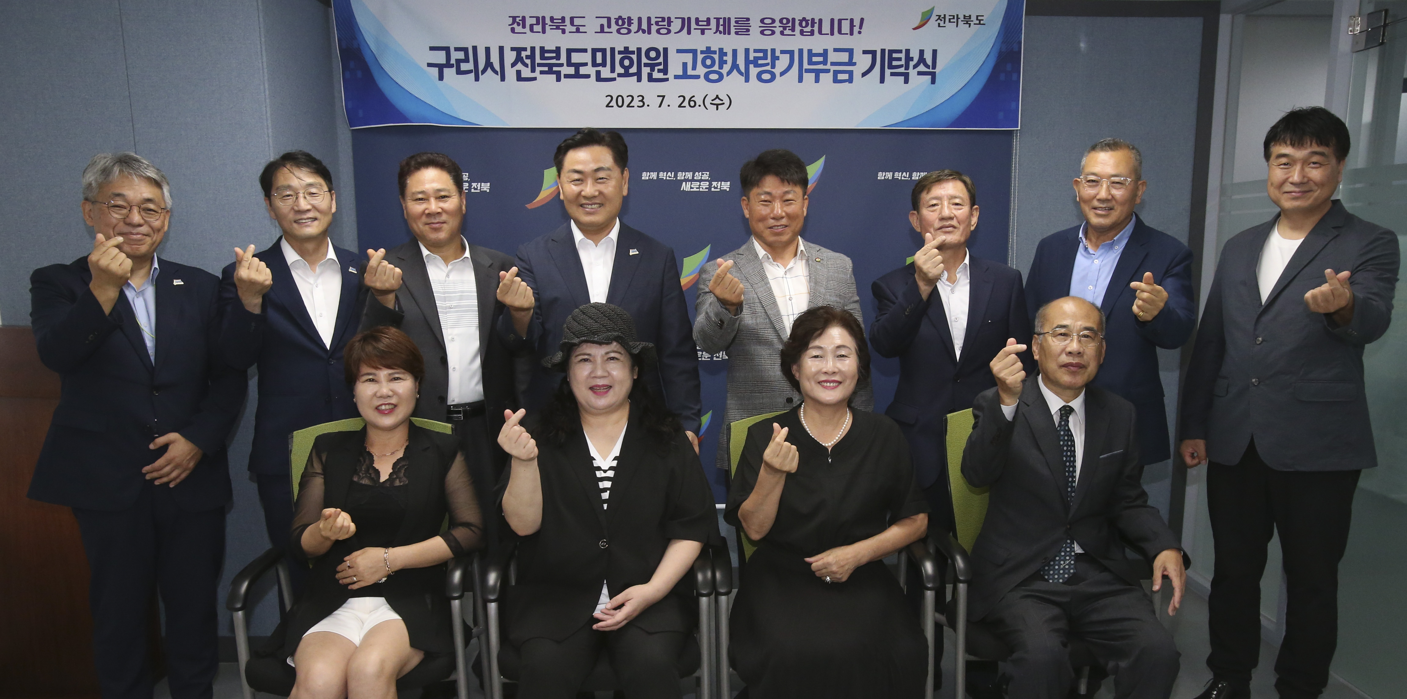 전북도는 26일 전라북도 서울본부 회의실에서 김관영 도지사, 서울본부장, 구리시 전북도민회장 및 회원 등이 참석한 가운데 고향사랑기부금 기탁식과 함께 출향단체의 자발적 기부 분위기 확산을 위한 전라북도 고향사랑기부 행사를 진행했다고 밝혔다.