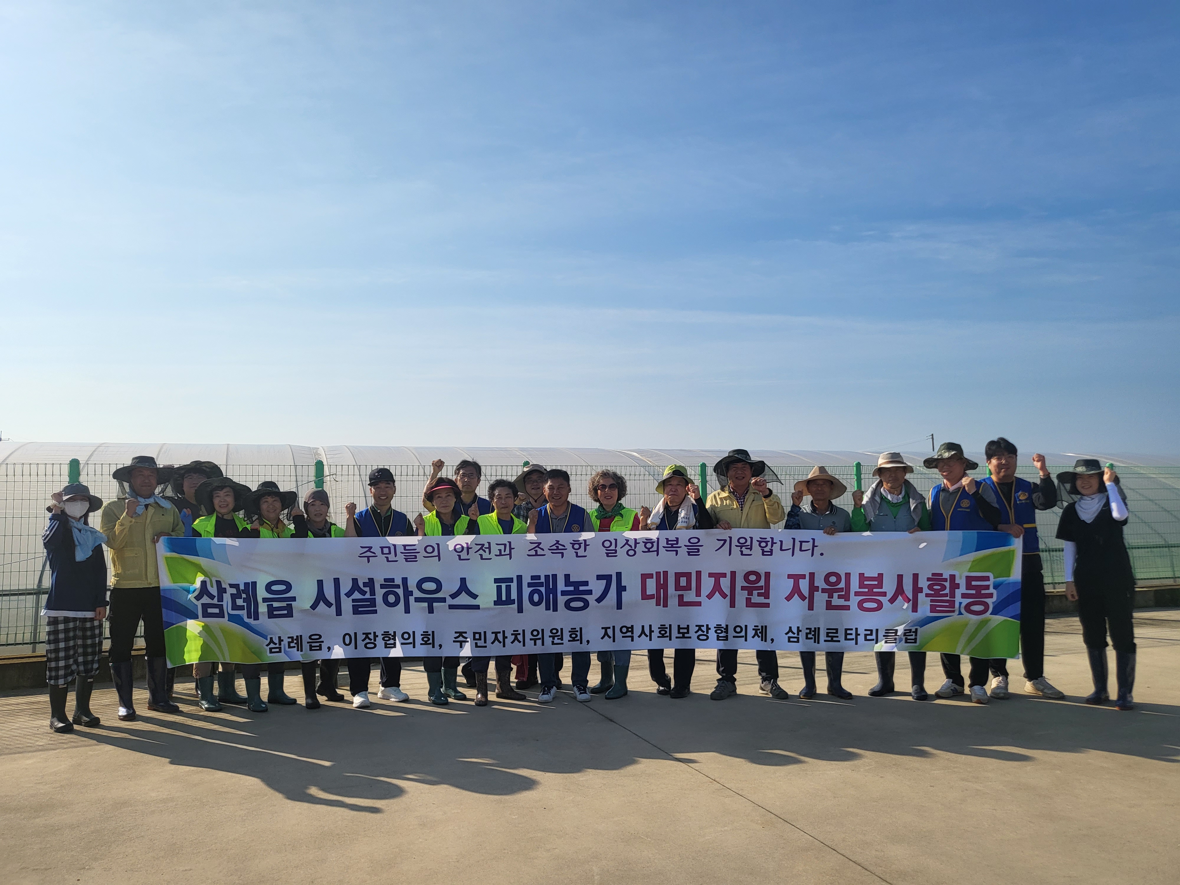 2일 삼례읍은 최근 사회단체인 이장협의회, 주민자치위원회, 지역사회보장협의체, 삼례로타리클럽과 함께 집중호우로 피해가 큰 삼례리, 하리 일원 시설하우스 피해 농가 4곳을 찾아 대민 봉사활동을 펼쳤다고 밝혔따.