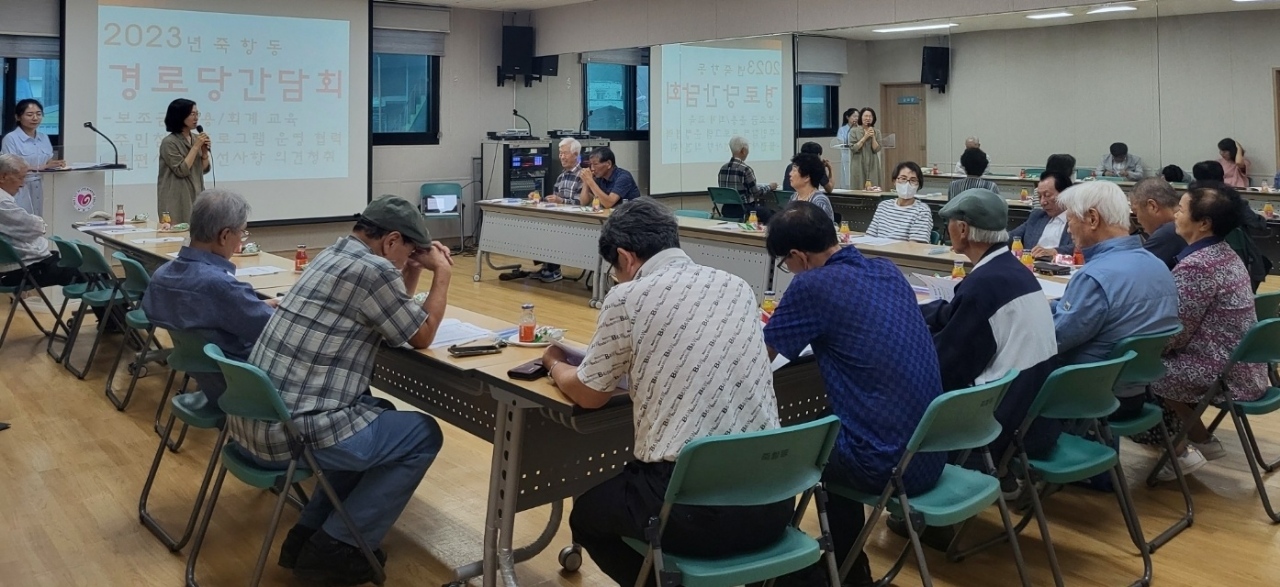 이번 간담회는 ▲경로당 보조금 운용 지침 교육 ▲주민참여형 건강프로그램 운영 ▲폭염, 태풍 대응 ▲IPTV 시정 홍보 및 스마트 교육 ▲불편 사항 및 개선사항 등 의견 청취 순으로 진행했다.