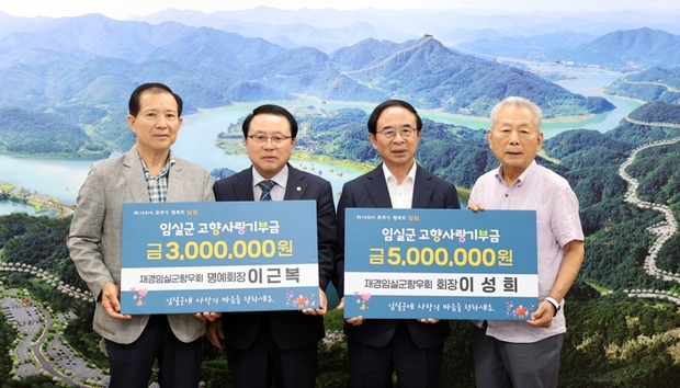 임실군은 재경임실군향우회 이성희 회장이 500만 원, 이근복 명예회장이 300만 원을 기부했다고 11일 밝혔다.