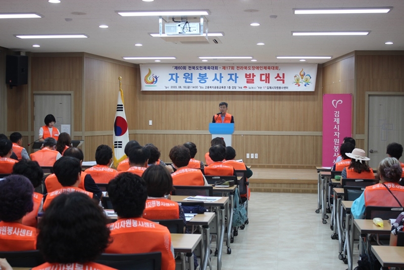 [김제=뉴전북] 김제시는 지난 18일 김제시자원봉사센터 주관으로 ‘제60회 전북도민체육대회·제17회 전라북도장애인체육대회 자원봉사자 발대식’을 개최했다.