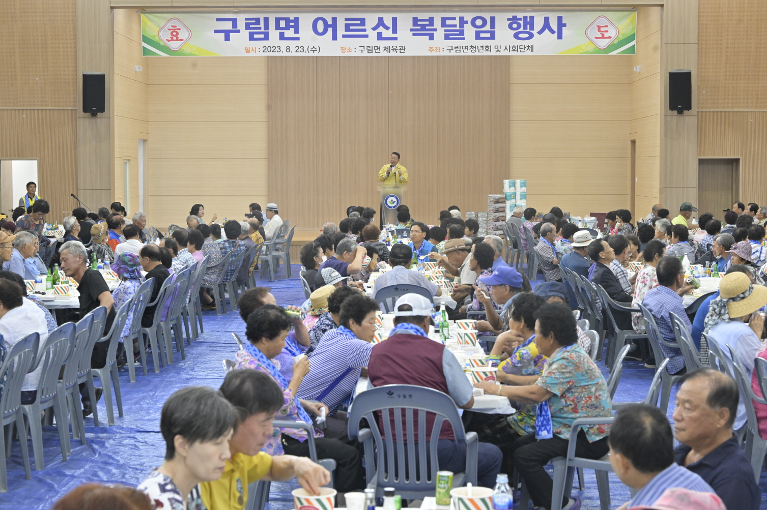 이번 행사는 폭염으로 힘든 여름철 말복을 맞아 어르신에 대한 공경과 감사의 뜻을 전하기 위해 추진됐으며, 최영일 순창군수, 신정이 순창군의회의장을 비롯해 500여 명의 어르신들이 참석한 가운데 성대하게 열렸다.