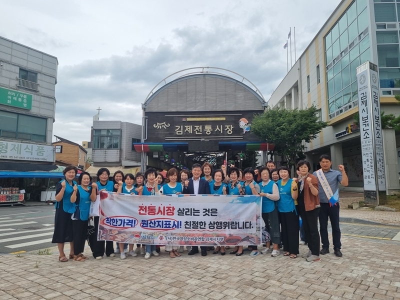 [김제=뉴전북] 한국여성소비자연합 김제시지부(지부장 이승은)는 지난 23일 제60회 전북도민체전 성공을 기원하는 물가안정 캠페인을 김제전통시장 일원에서 진행했다.