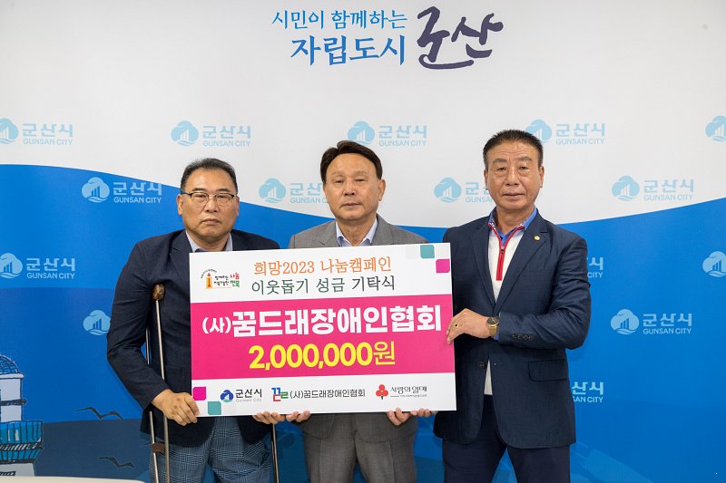 [군산=뉴전북] 군산시는 28일 (사)꿈드래장애인협회(회장 하태복)가 아동양육시설 일맥원에 아이들을 위해 써달라며 200만 원 성금을 기탁했다고 밝혔다.