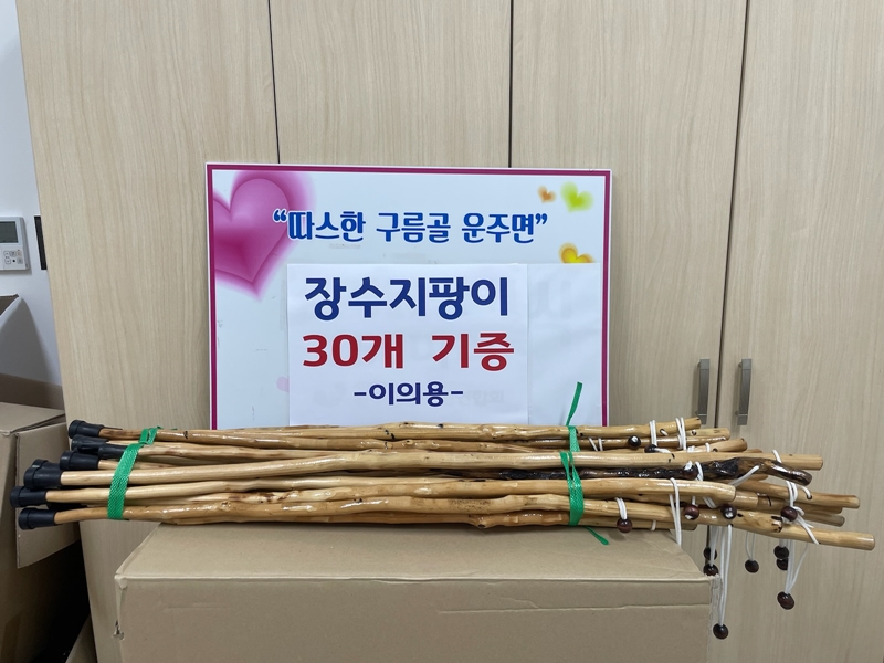 [완주=뉴전북] 대전에 거주하는 이의용 씨가 완주군 운주면에 손수 만든 지팡이 30개를 기증했다.
