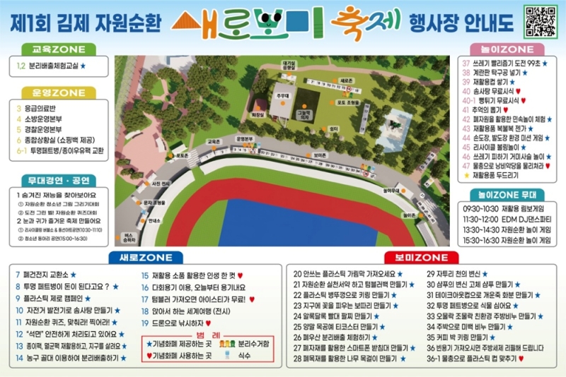 [김제=뉴전북] ‘제1회 자원순환 새로보미축제’가 오는 7일 다채로운 자원순환 관련 50여 개 프로그램과 함께 김제시민문화체육공원 잔디광장에서 펼쳐진다.