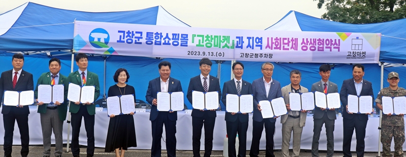 13일 고창군고창마켓이 13개 지역사회단체(고창군체육회, 고창군여성체육회, 새고창로타리클럽, 고창로타리클럽, 고창라이온스클럽, 고창매화라이온스클럽, 고창군소상공인연합회, 고창군새마을금고, 일일선운동본부고창지회, 고창군애향청년회, 3098부대2대대, 고창청년회의소 JC, 고창마켓입점자협의회)와 상생협약식을 갖고, 향후 고창군 농수축산물을 이용할 수 있도록 홍보 판매하기로 했다.