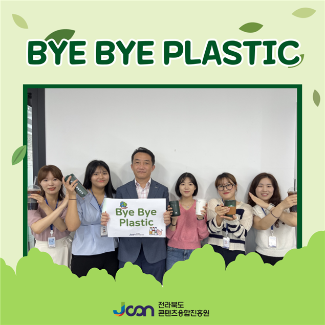 [도정=뉴전북] (재)전라북도 콘텐츠융합진흥원(원장 최용석)이 플라스틱 사용을 줄이고 착한 소비를 실천하기 위한‘바이바이플라스틱(Bye Bye Plastic) 챌린지’에 동참했다.