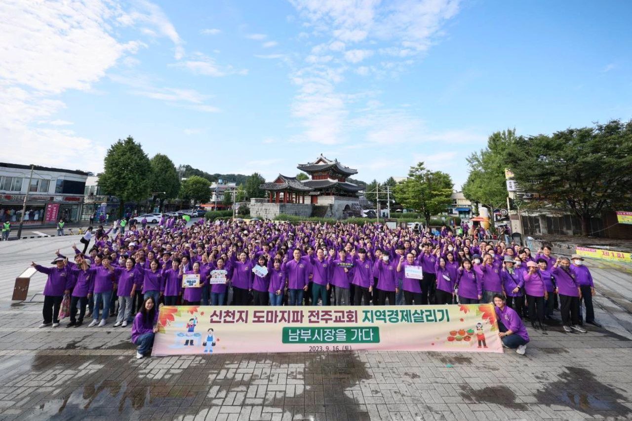 [사회=뉴전북] 신천지예수교 증거장막성전 도마지파 전주교회(담임 최중일·이하 신천지 전주교회)와 전주 풍남문시장 상인회(회장 김홍기 이하 풍남문상인회)가 지난 16일 지역경제 살리기 운동에 함께 나섰다.