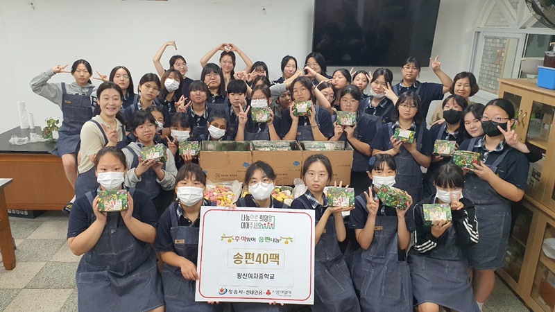 [정읍=뉴전북] 정읍시 왕신여자중학교(교장 염길중) 학생들이 지난 15일 추석을 맞아 독거노인들을 위해 송편 도시락 40개를 만들어 신태인읍 행정복지센터에 전달했다.