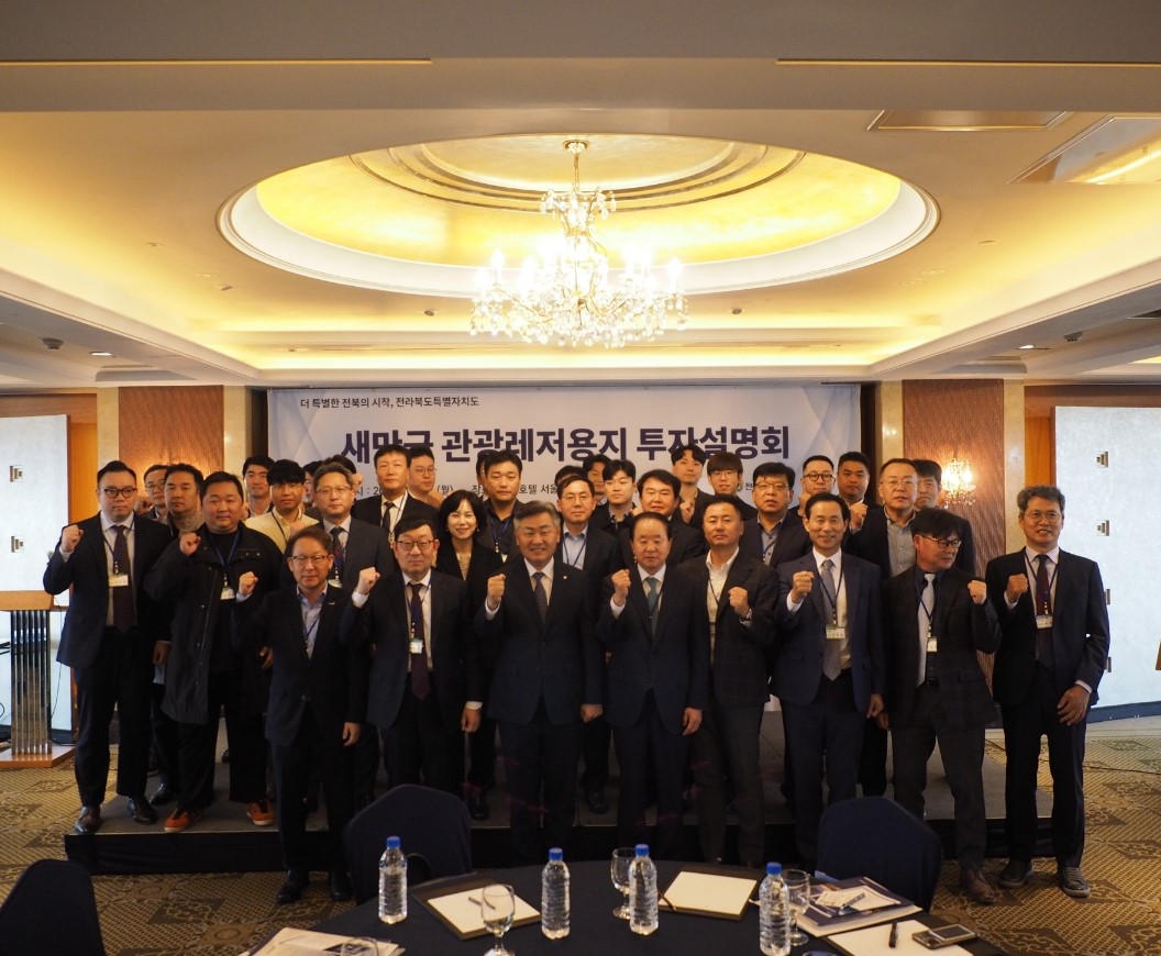 [도정=뉴전북] 전북도와 전북개발공사는 지난 6일 서울 롯데호텔에서 새만금 관광레저분야 관심 기업들을 초청해 ‘새만금 관광레저용지 투자유치 설명회’를 공동 개최했다.