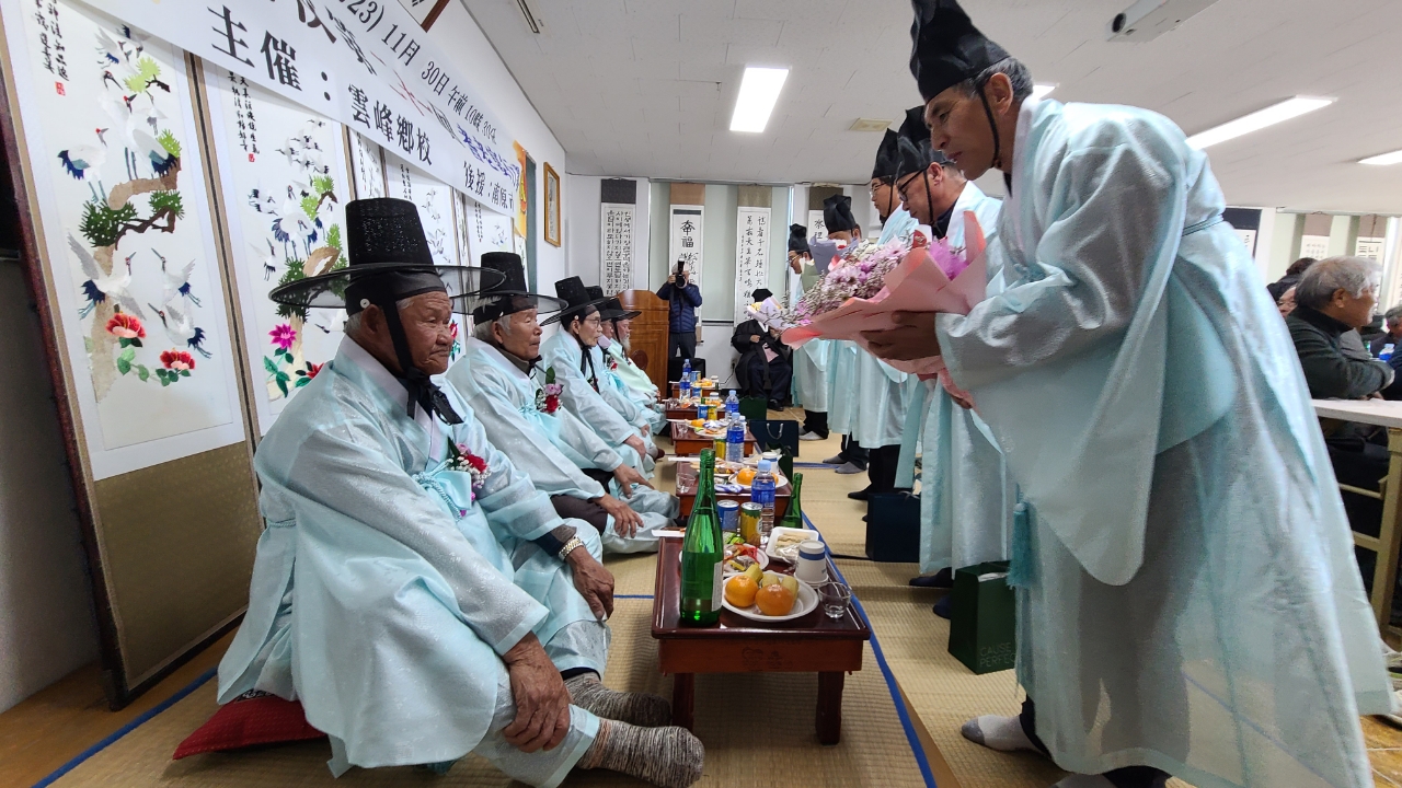 [남원=뉴전북] 전북 남원시 운봉향교(전교 서영복)는 지난달 30일 향교 충효관에서 관내 70세 이상 노인 100여 명을 초청해 2023년 기로연 행사를 개최하였다.