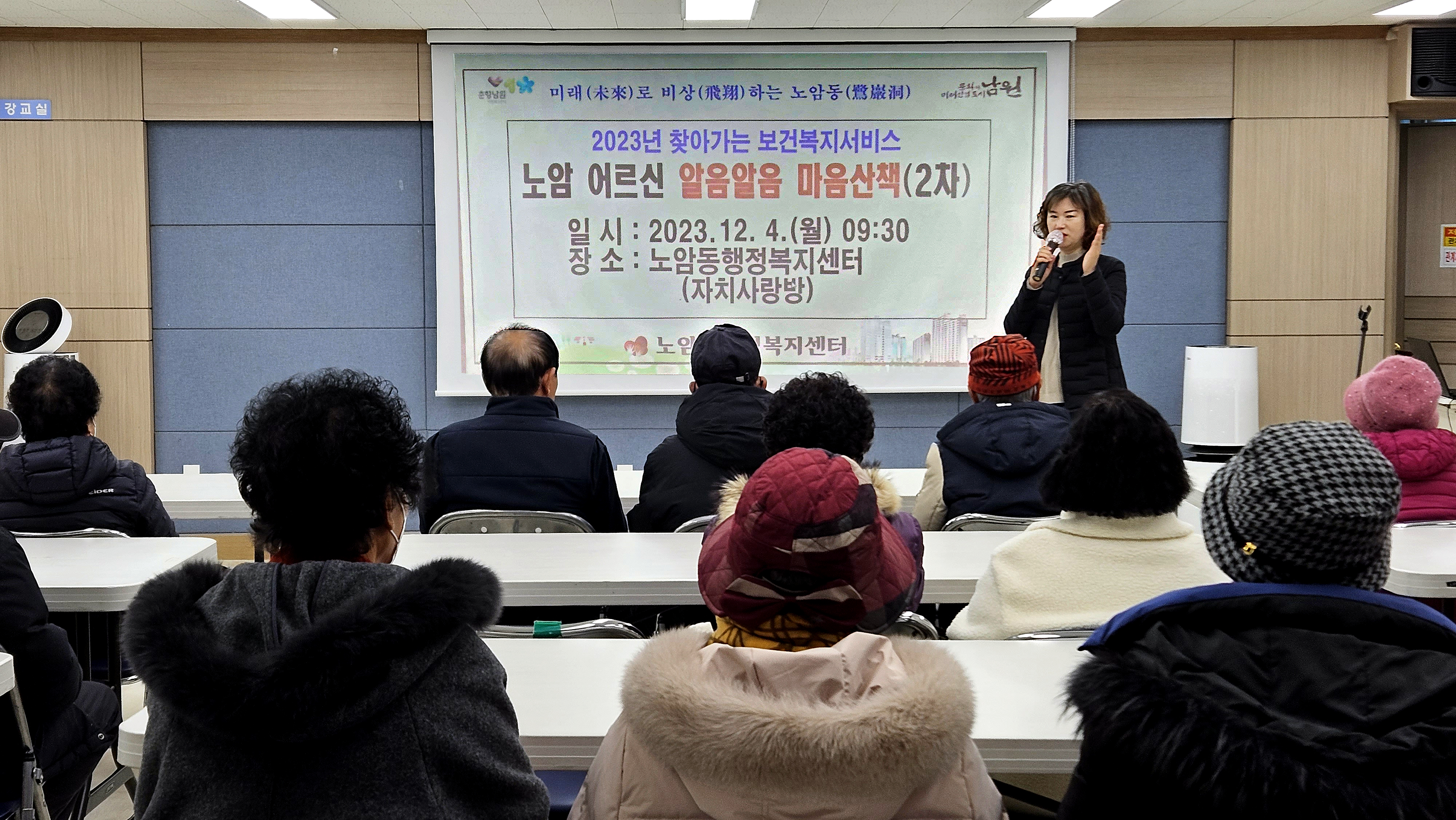 [남원=뉴전북] 남원시 노암동행정복지센터에서는 어르신 치매예방을 위하여 11월 8일과 12월 4일 주민자치문화공간에서 『노암 어르신 알음알음 마음산책』을 운영했다.