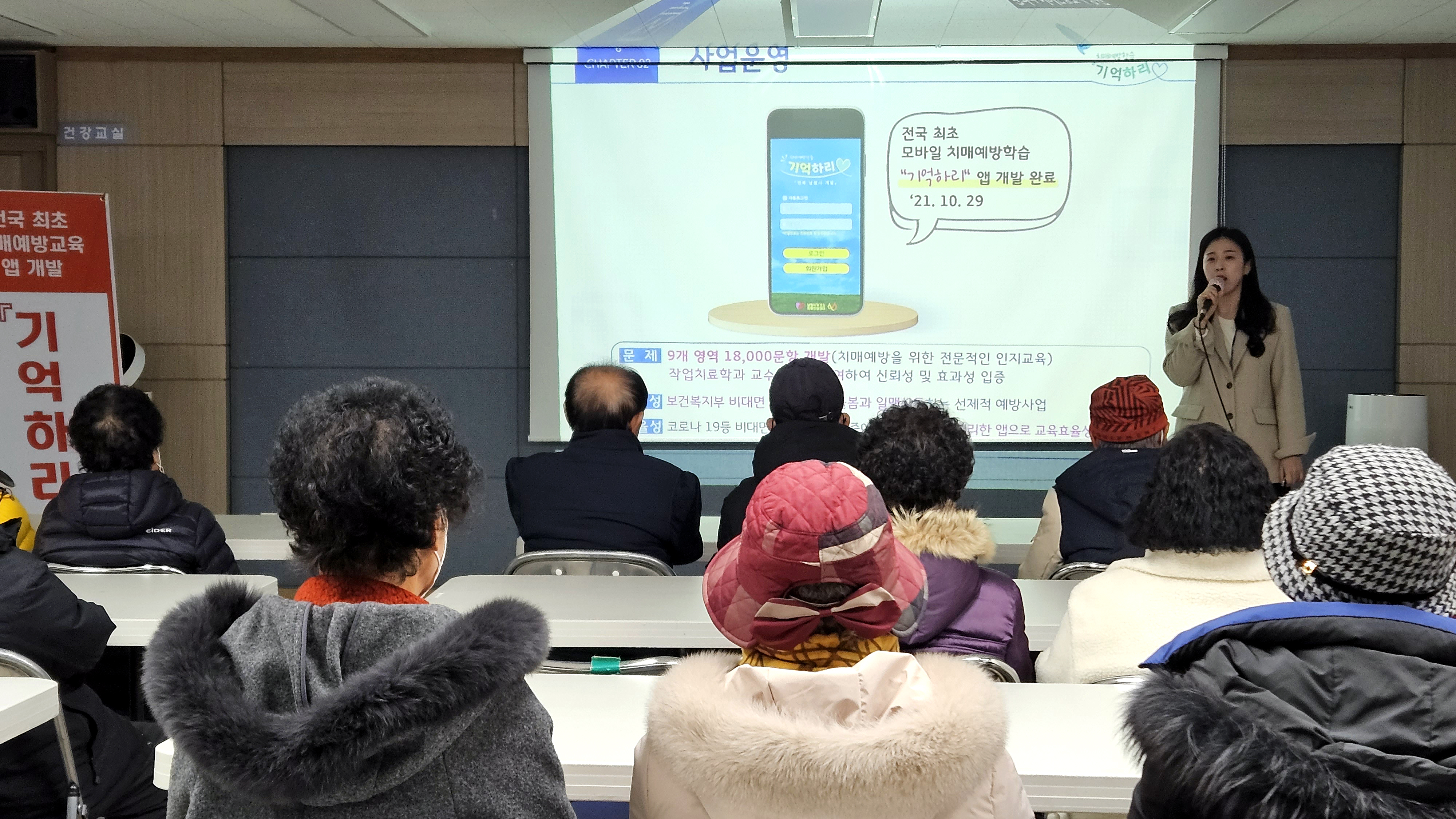 남원시보건소 치매안심센터에서 치매 예방교육과 함께 인지강화 어플 「기억하리」 소개 및 사용법을 안내하고, 이후 색칠 공부와 퍼즐 맞추기를 추가로 진행했다.