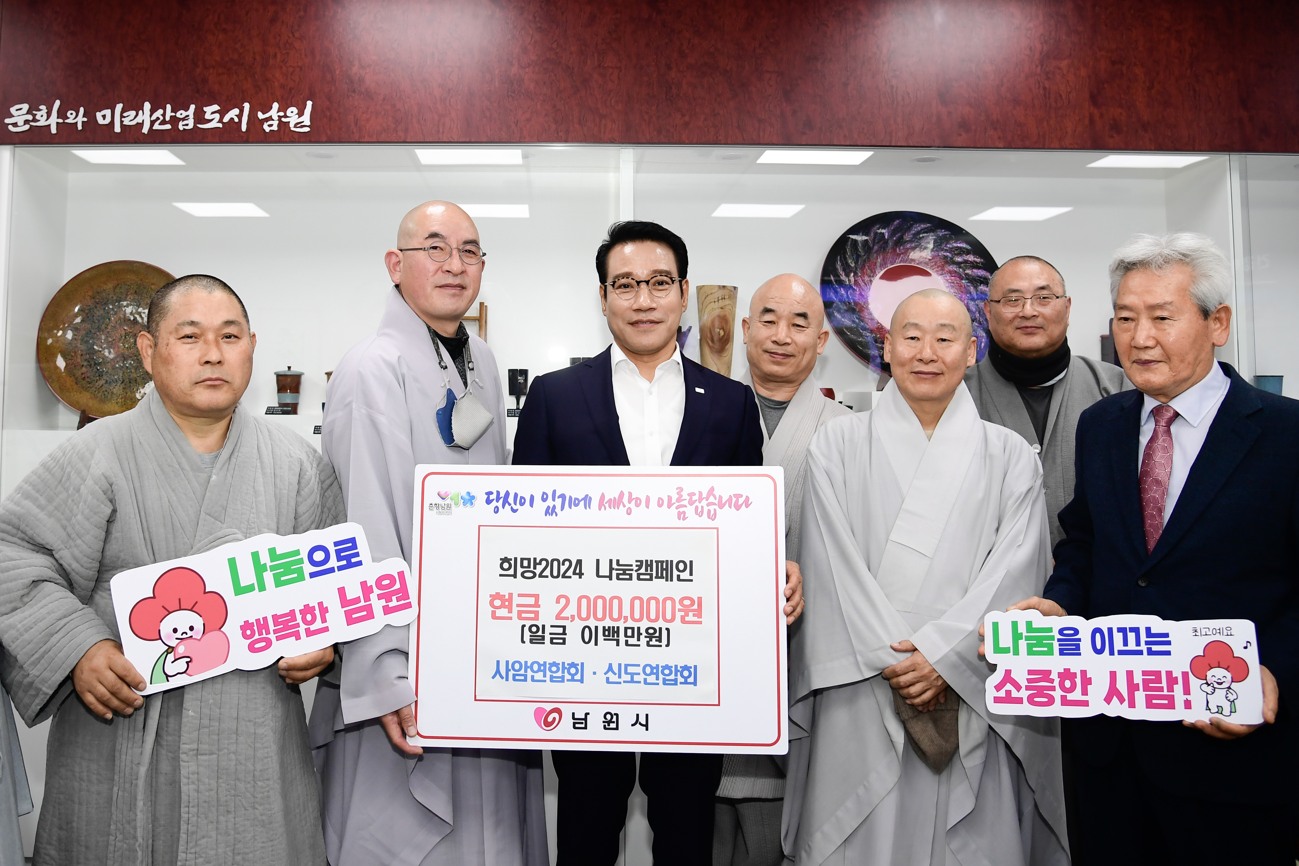 [남원=뉴전북] 남원시는 희망2024 나눔 캠페인이 한창인 가운데 11일 사암연합회·신도연합회에서 이웃돕기 성금 2백만원을 기탁했다고 밝혔다.