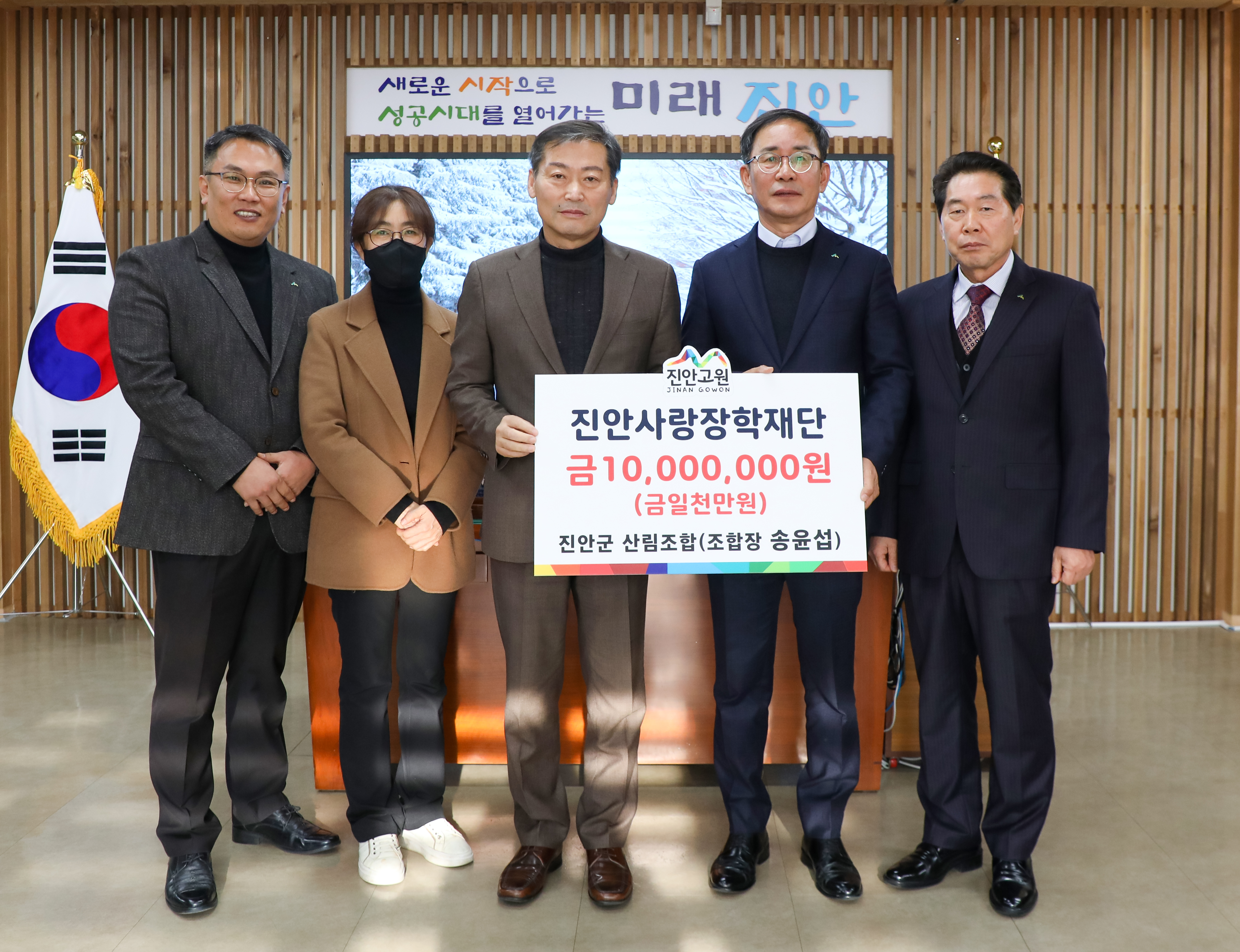 [진안=뉴전북]진안사랑장학재단(이사장 전춘성 진안군수)은 진안군 산림조합(조합장 송윤섭)에서 장학기금 1천만원을 기탁했다고 29일 밝혔다.
