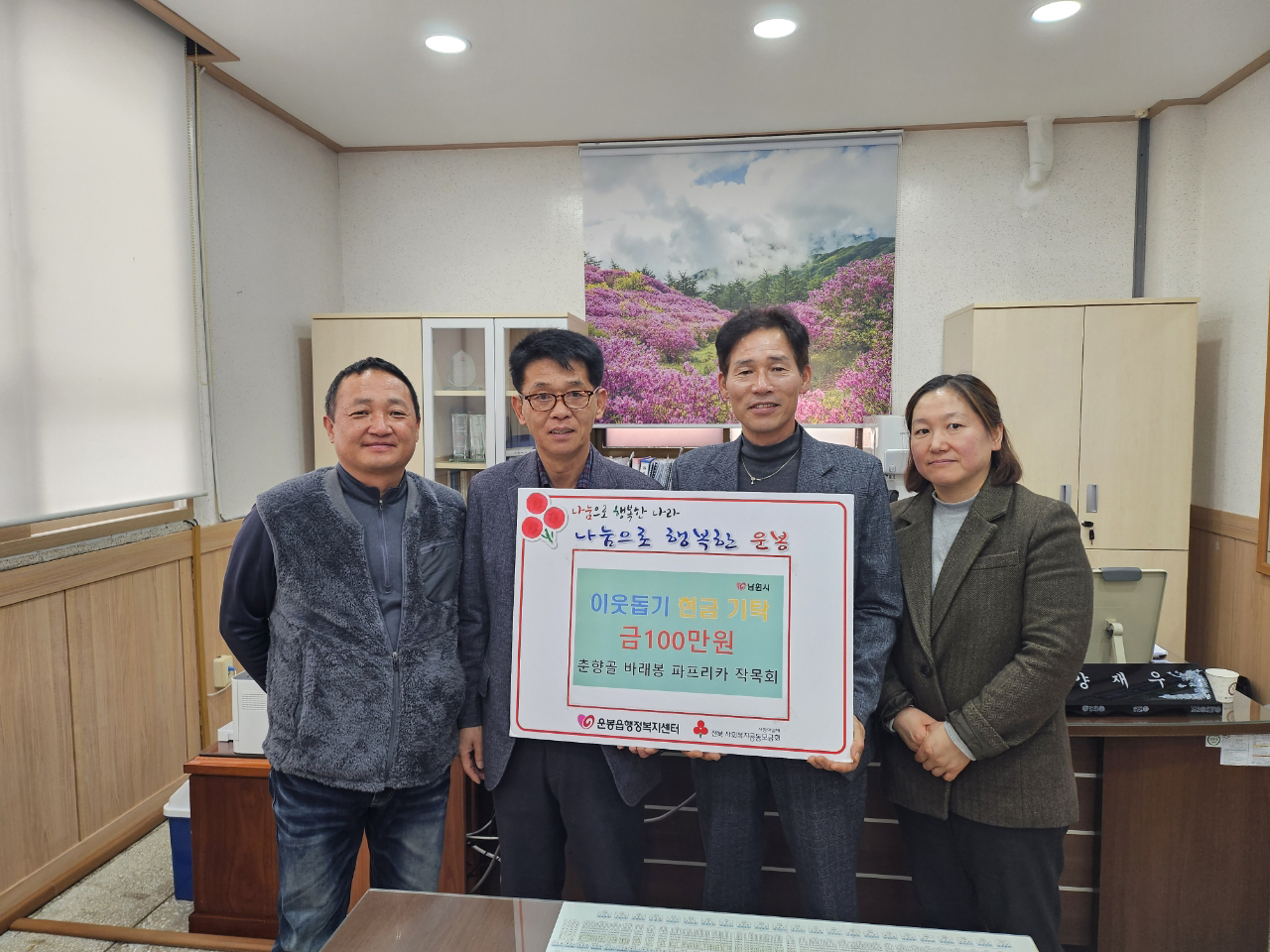 [남원=뉴전북] 남원시 운봉읍 춘향골 바래봉 파프리카 작목회(회장 박태성)에서는 지난 2일(화) 새해를 맞이하여 어려운 이웃을 위해 사용해 달라며 회원들이 성심성의껏 모은 성금 100만원을 운봉읍 행정복지센터에 기탁했다.